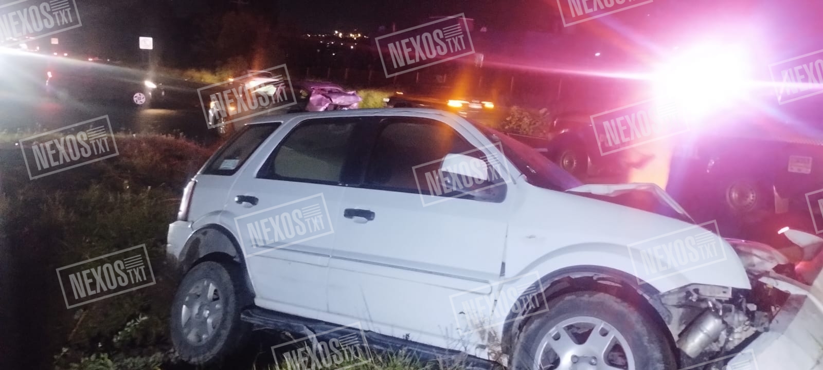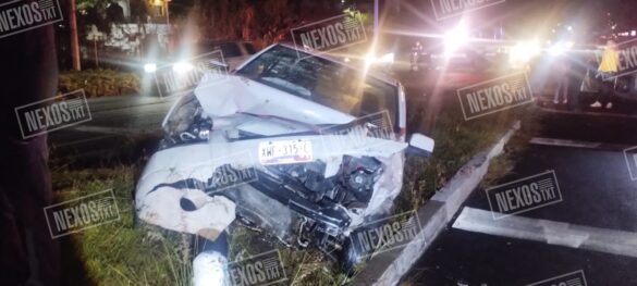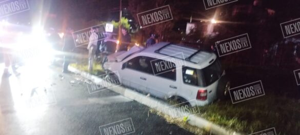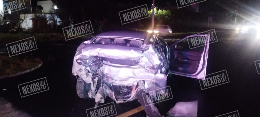 Panotla, Tlax.— La noche de este domingo se registró un aparatoso accidente vial en el retorno de Santa Elena, en Panotla, donde un automóvil Chevrolet Aveo y una camioneta Ford EcoSport colisionaron violentamente.