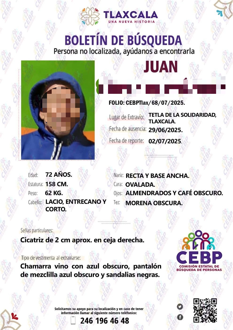 En el primer caso, alrededor de las 14:30 horas, vecinos de la comunidad de Tetla reportaron el hallazgo de un cuerpo semienterrado en una zona de labor, parcialmente cubierto por lodo y sin pantalón. La víctima fue identificada como Juan N., de 72 años de edad, quien había sido reportado como desaparecido días antes. Paramédicos confirmaron que ya no contaba con signos vitales, por lo que la zona fue acordonada y procesada por personal del Instituto de Ciencias Forenses para las diligencias correspondientes.