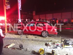 Una llamada al servicio de emergencias 911 movilizó a elementos prehospitalarios y policíacos, ya que a la altura de “Mcdonald’s” se encontraba un vehículo Jetta, color rojo, con placas del Estado de México impactado contra un anuncio de la Secretaría de Comunicaciones y Transportes, con un saldo de cinco lesionados y el conductor sin vida.
