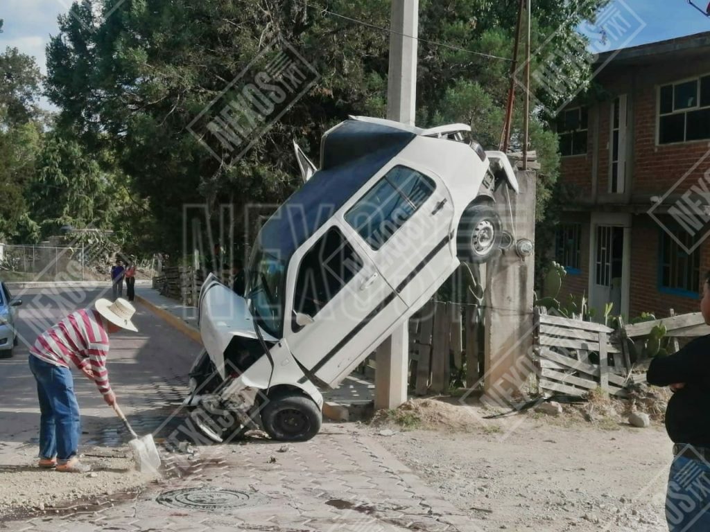 Los hechos apersonaron a elementos de la policía municipal,a la calle Camino Real donde el impacto de un vehículo contra un poste de luz, alarmó a los vecinos para dar aviso al servicio de emergencias 911.