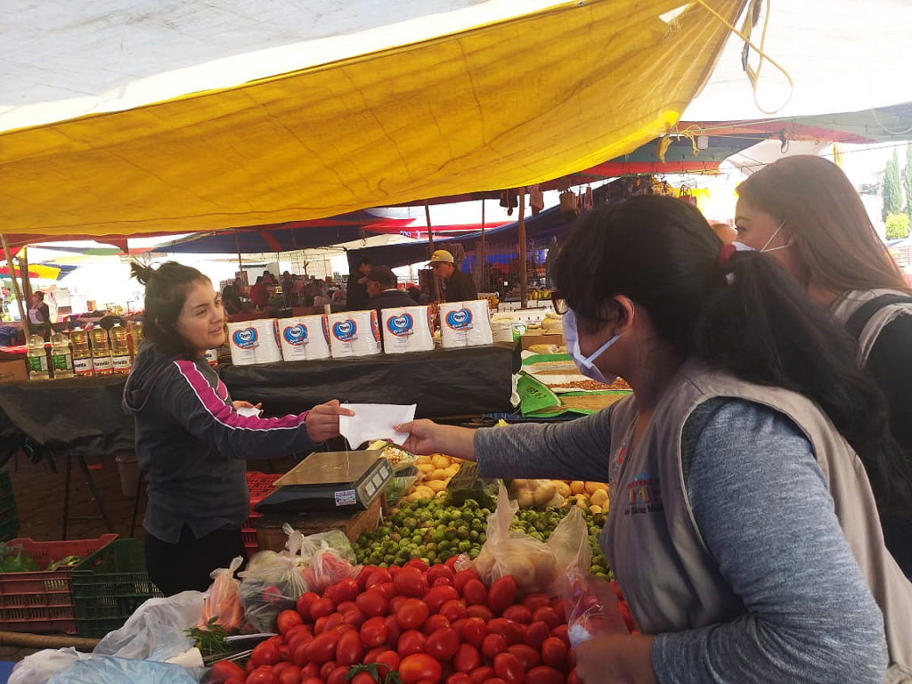 • Se refuerza el uso de gel antibacterial y cubrebocas en comerciantes y usuarios para mitigar los riesgos de contagio del Covid-19