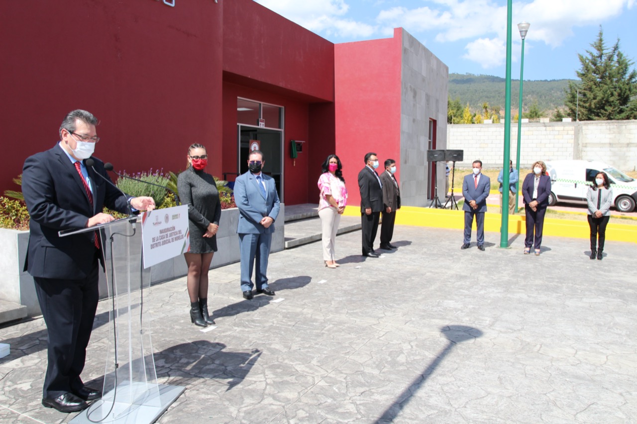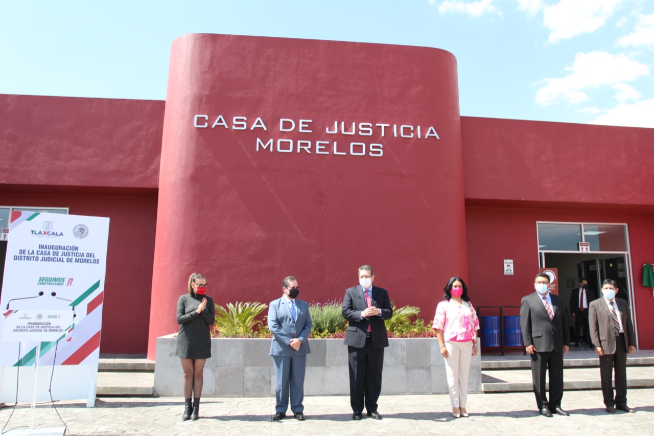El gobernador del Estado, Marco Antonio Mena Rodríguez y el presidente del Tribunal Superior de Justicia (TSJE) y del Consejo de la Judicatura del Estado (CJE), Fernando Bernal Salazar, inauguraron este martes las instalaciones de la Casa de Justicia del Distrito Judicial de Morelos, con sede en el municipio de Tlaxco, el cual cuenta con un diseño armónico para brindar una atención de calidad a los justiciables y profesionales del derecho.