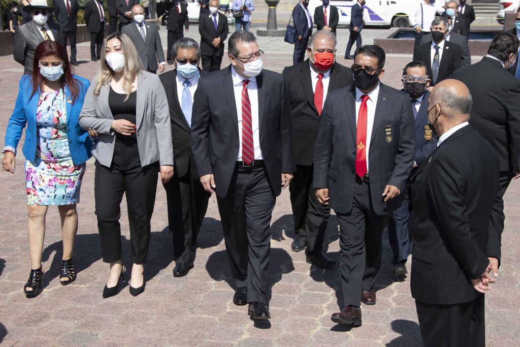En la ceremonia estuvieron Fernando Bernal Salazar, Magistrado Presidente del Tribunal Superior de Justicia del Estado; Luz Guadalupe Mata Lara, Presidenta de la Mesa Directiva del Congreso Local; Máximo Hernández Cervantes, Gran Maestro de la Gran Logia del Estado de Tlaxcala; Mildred Vergara Zavala, Presidenta Municipal de Tlaxcala; Marco Antonio Montiel, Diputado Gran Maestro y Cutberto Luna García, Past Gran Maestro de la Gran Logia del Estado de Tlaxcala.