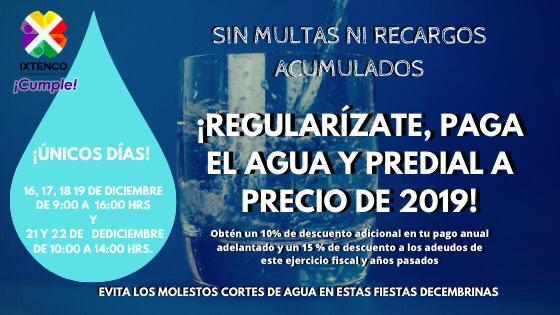 No te quedes sin agua! Aprovecha esta promoción de fin de año y paga el 2020 a precio de 2019. Además, obtén un 10 por ciento de descuento adicional por pago adelantado. Si debes años atrasados, no te cobramos multas ni recargos, además te haremos un 15% de descuento. #PagoAdelantado #CiudadanoResponsable