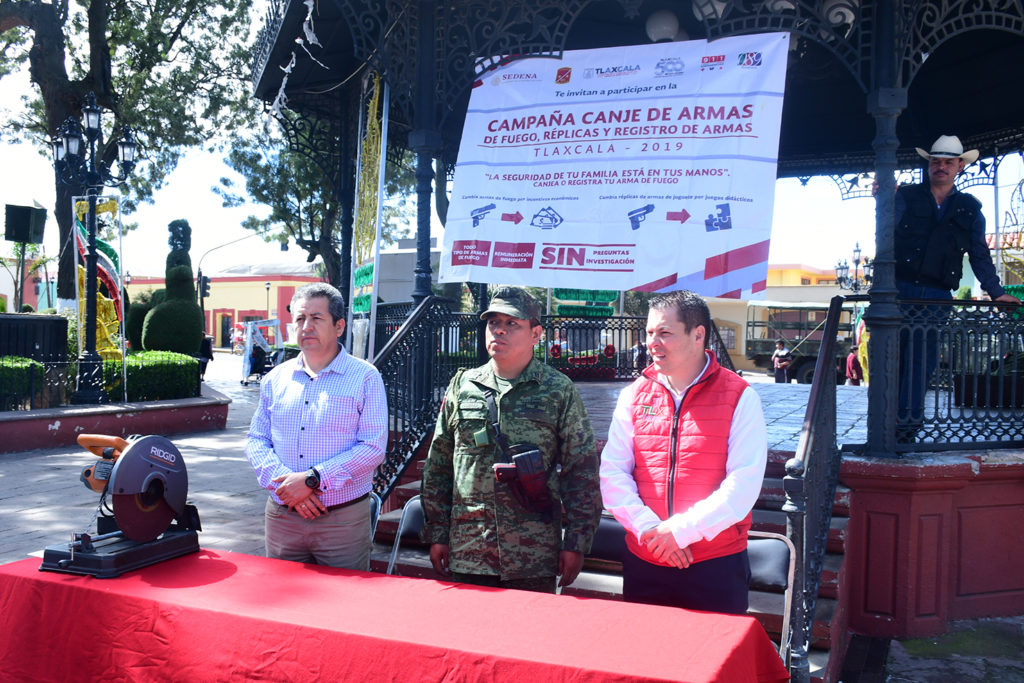 El Gobierno Municipal de Tlaxco se suma a la “Campaña de Canje de Armas de Fuego, Réplicas y Registro 2019”, que impulsa la Secretaría de la Defensa Nacional (SEDENA) y la Comisión Ejecutiva del Sistema Estatal de Seguridad Pública (CESESP) del Gobierno del Estado, con el slogan “La seguridad de tu familia está en tus manos, canjea o registra tu arma de fuego”.