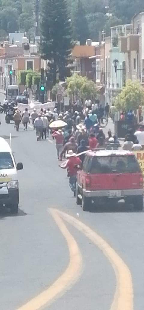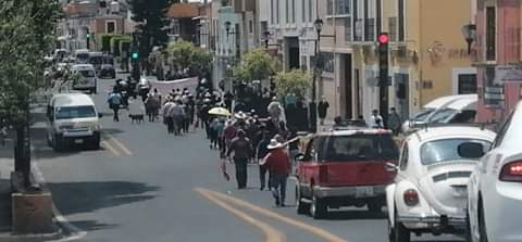 Encabezados por los tahoneros de la cabecera municipal, decenas de vecinos marcharon desde el Ayuntamiento de Totolac y hasta palacio de Gobierno para pedir la intervención de la Secretaría de Gobierno.