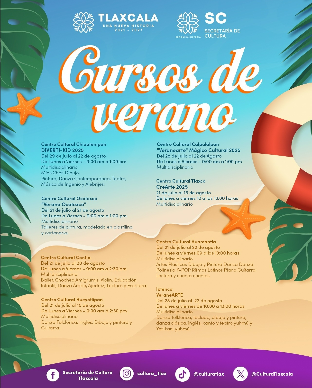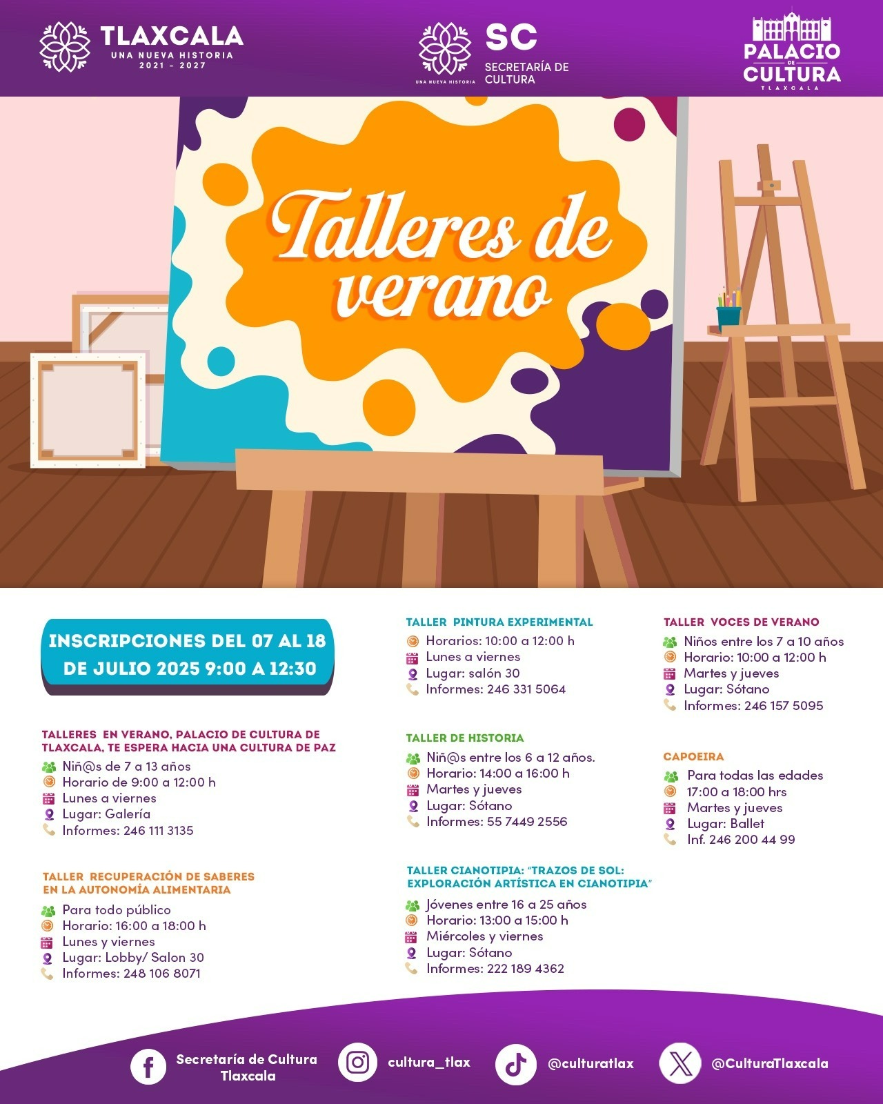 Para conocer fechas, sedes específicas, horarios y requisitos de inscripción, las y los interesados pueden consultar las redes sociales oficiales de la Secretaría de Cultura de Tlaxcala o dirigirse directamente a los centros culturales de su municipio.