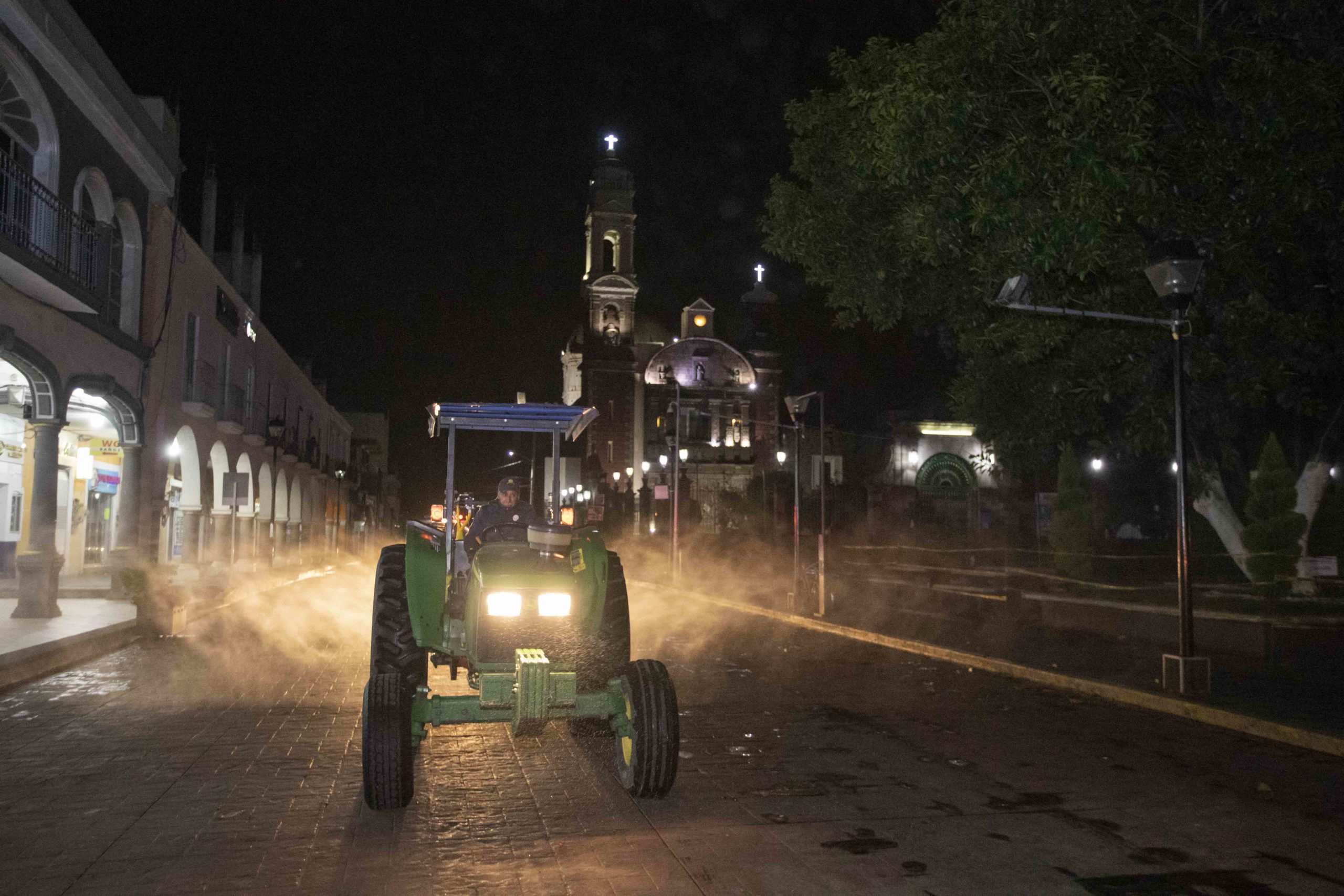 Cabe señalar que las brigadas de las Jornadas de Sanitización laboran en la noche con el apoyo de un vehículo tipo tractor que cuenta con un sistema adaptado de nebulizador con espreas y turbina que esparce 5 mil 760 litros de solución para lograr una desinfección activada en 30 segundos.