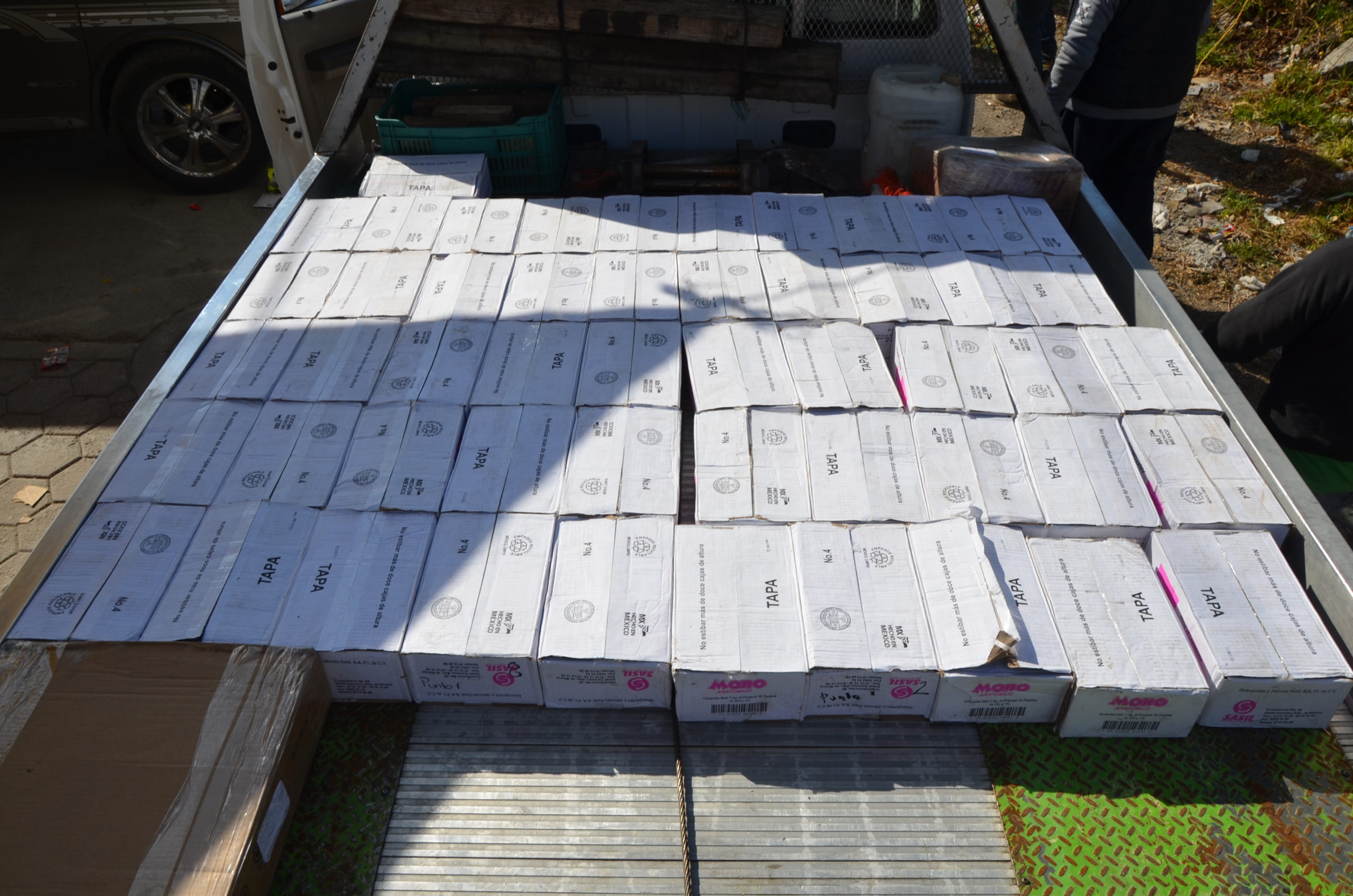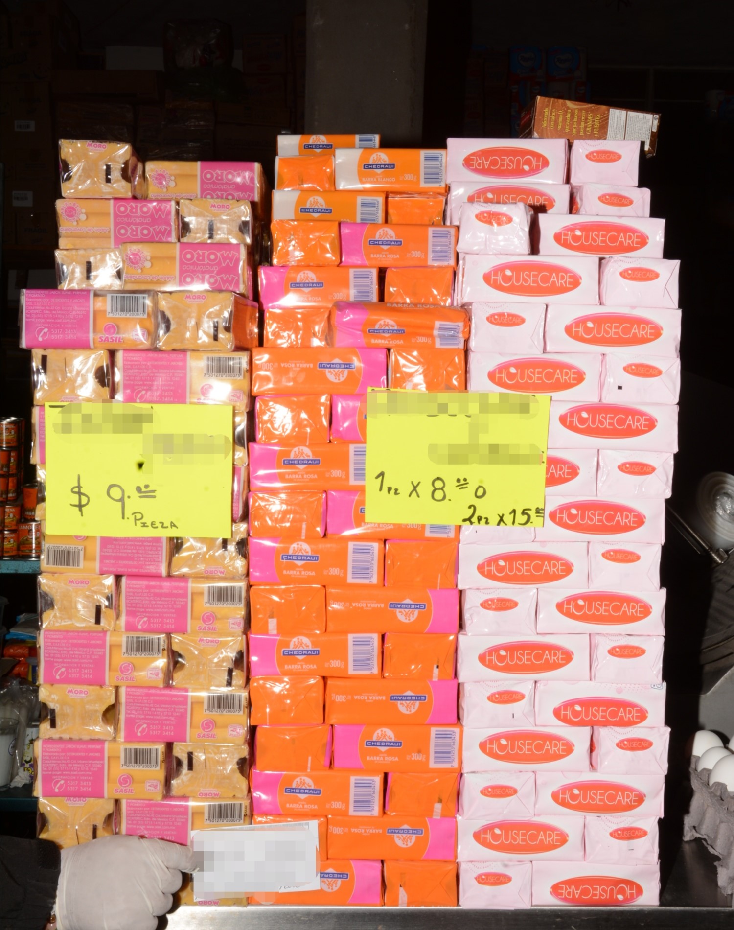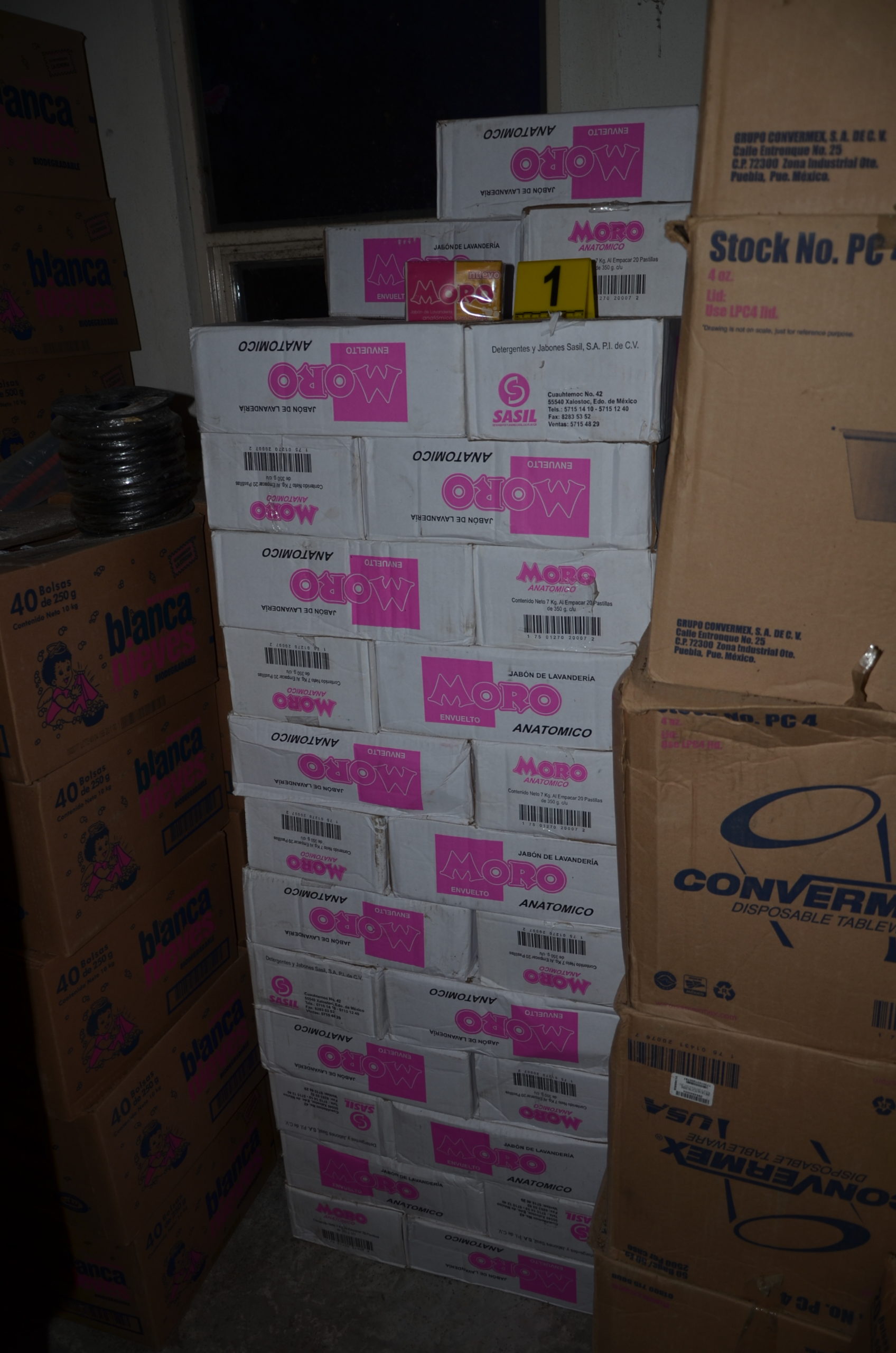 En dicha diligencia se aseguraron aproximadamente mil 523 piezas de jabón, equivalente a 14 toneladas, tres celulares, tres inmuebles y se detuvo a cinco personas: Évelin “C”, María “P”, Moisés “S”, Manuel “S” y Moisés “H”.