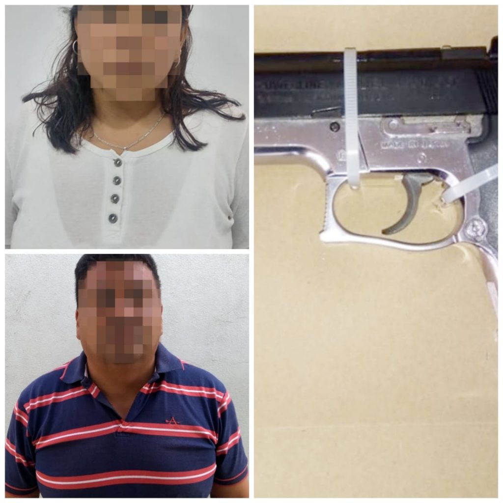 La Secretaría de Seguridad Ciudadana (SSC) a través de la Dirección de Operaciones Delegación Tlaxcala, aseguró a dos personas y una réplica de arma de fuego en el municipio de San Juan Totolac.