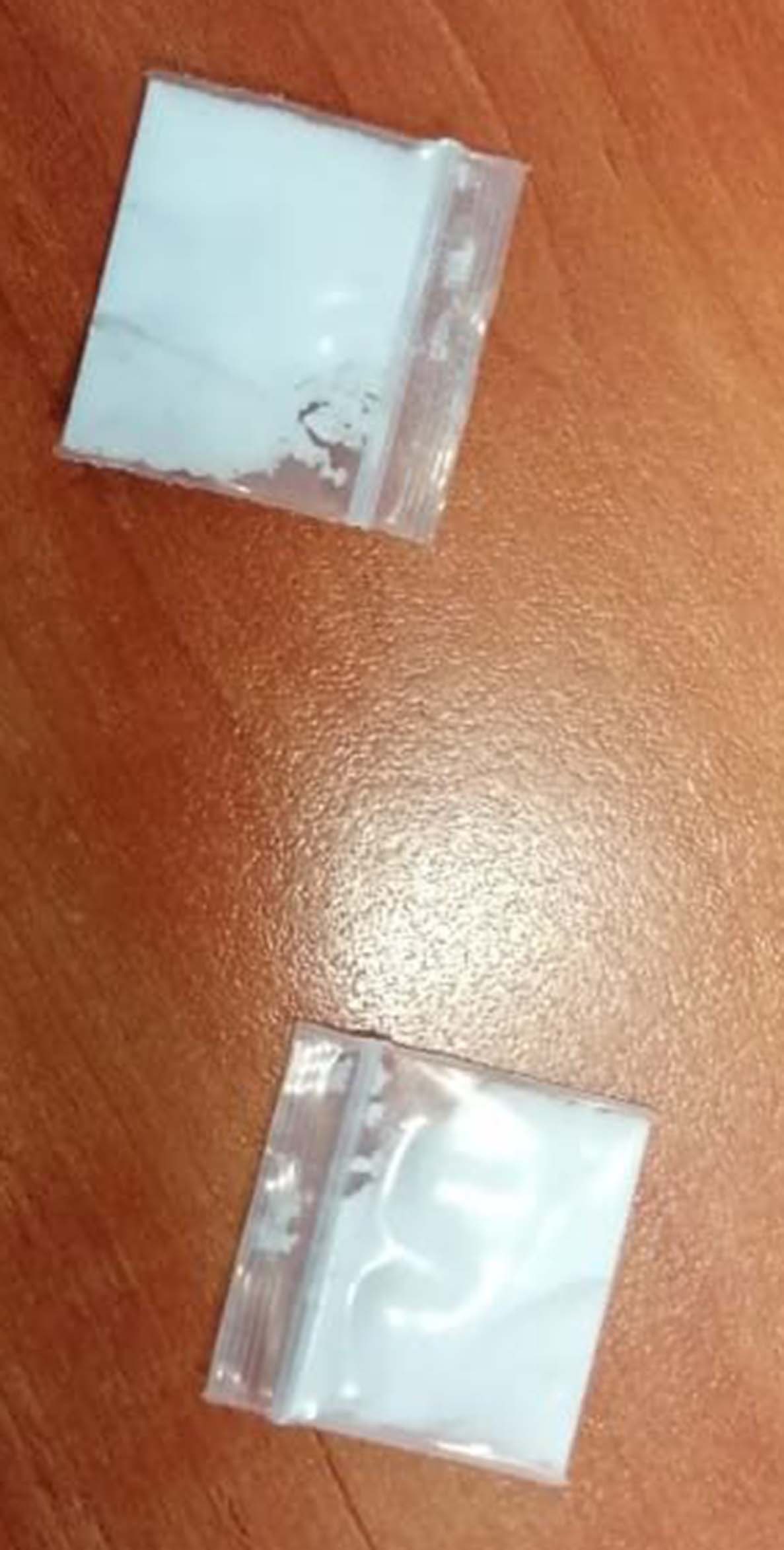 Por lo que, elementos de la SSC solicitaron descendieran de la unidad y poder realizar una revisión preventiva ubicando dos envoltorios con una sustancia granulada mejor conocida como Cristal, además, se localizó un envoltorio con hierba seca, características propias de la Marihuana.