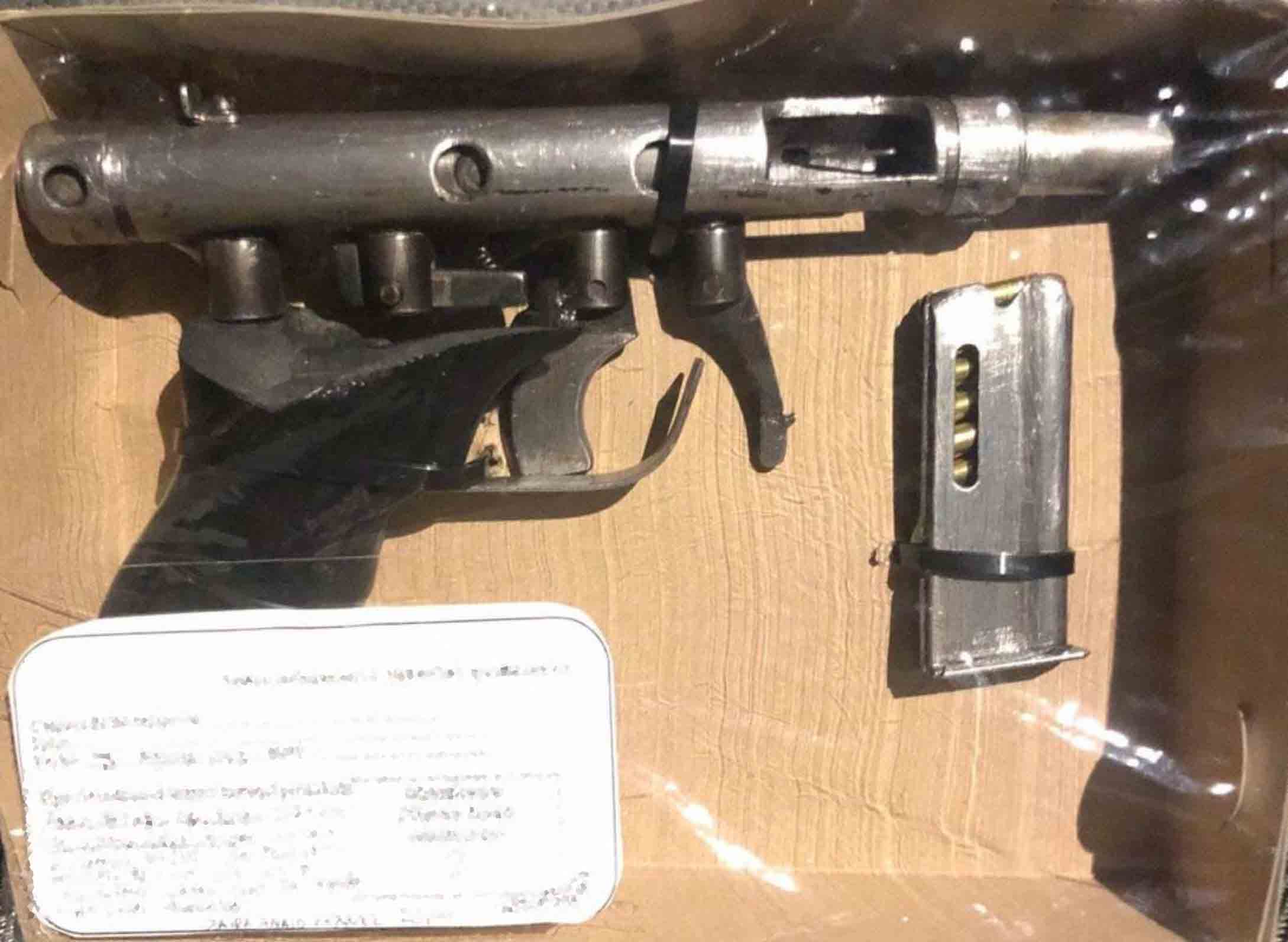 Ante tal situación se solicita realizar una inspección preventiva en su persona, ubicando a la altura de la cintura un arma de fuego tipo hechiza calibre .22 mm y un cargador abastecido con siete cartuchos útiles, así como dos envoltorios que contienen una sustancia sólida, granulada e incolora, con las características propias del Cristal.
