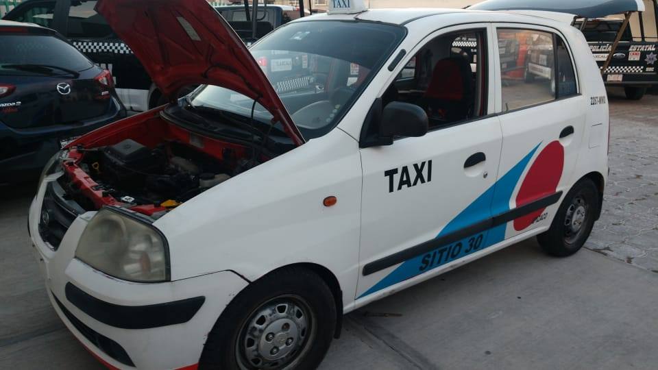 Tras un operativo de búsqueda, se logró ubicar un auto marca Dodge, tipo Atos, rotulado de taxi y sin placas de circulación, además abordo tres hombres, a quienes se les solicitó documentación del vehículo, mencionando no contar con documento alguno, asimismo, al realizar una inspección preventiva se localizaron un par de celulares nuevos y un arma de fuego debajo del asiento del conductor.