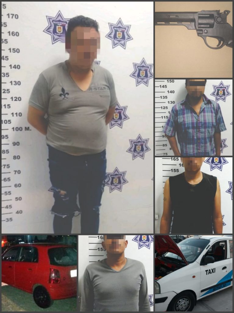 En la primera acción, personal de la Delegación Apizaco recibió una alerta de un vehículo rotulado de taxi merodeando por la colonia Coatepec en Tetla, con el cual sus tripulantes presuntamente intimidaban a los transeúntes.