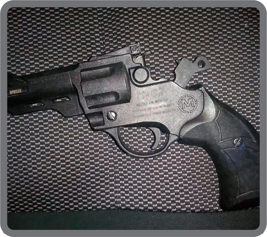 Asimismo, al interior de la unidad se localizó una réplica de arma de fuego tipo revolver.
