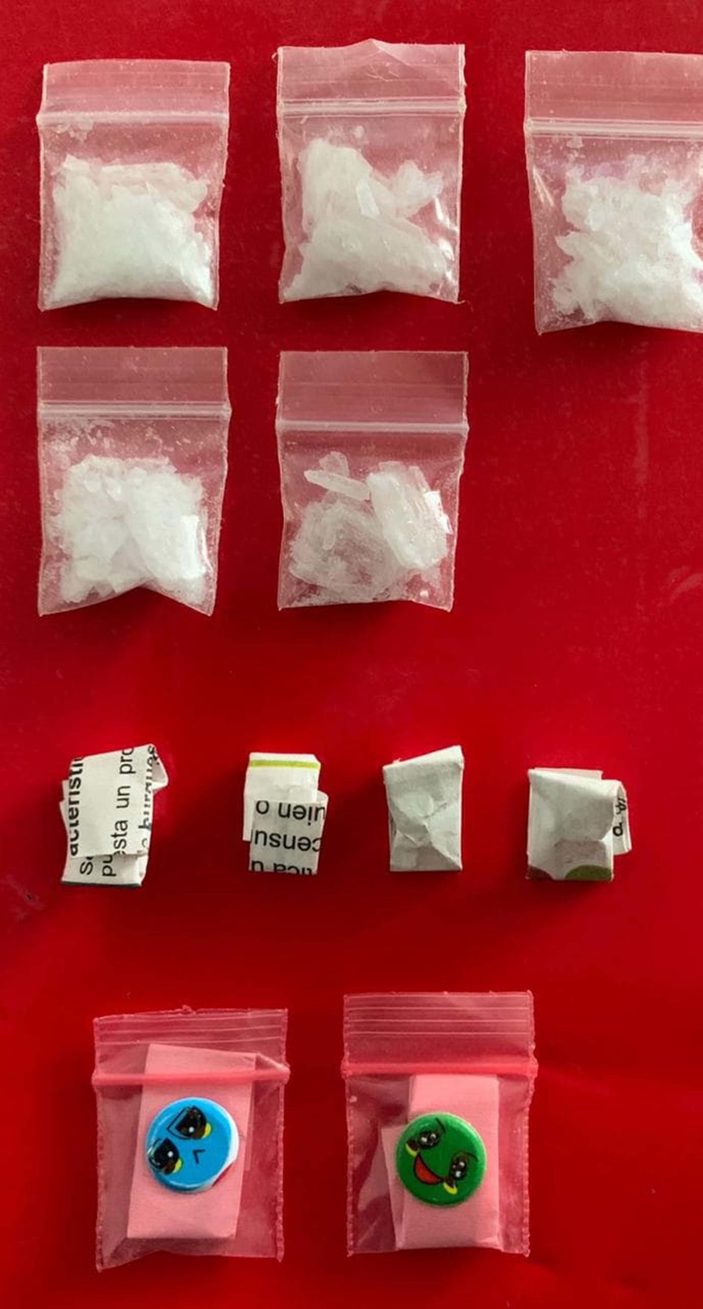- Se aseguraron once envoltorios los cuales contienen en su interior distintas drogas sintéticas como Cristal, Cocaína y Crack o Piedra.