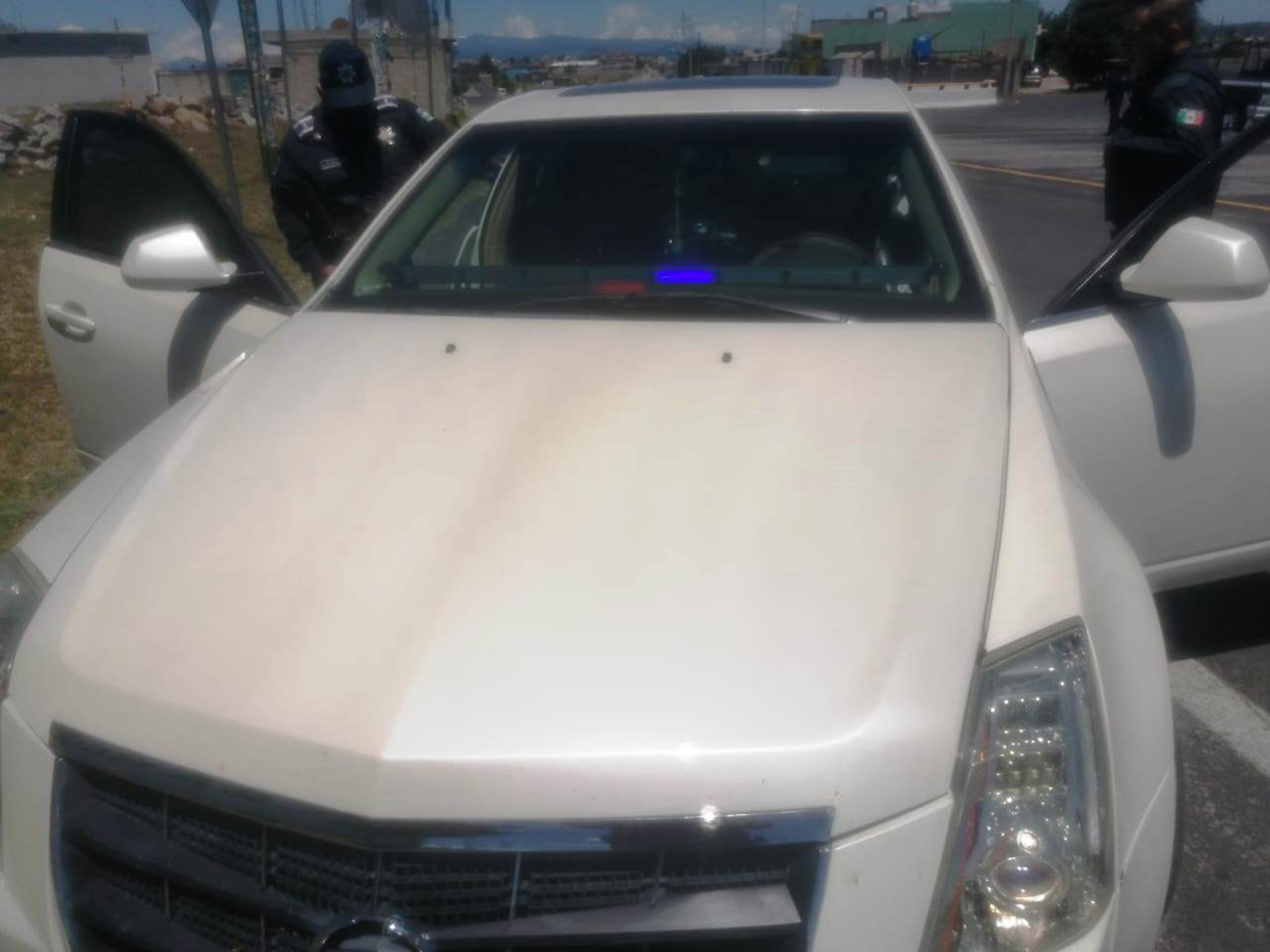 Los elementos estatales, quienes se encontraban realizando recorridos de seguridad y vigilancia en los alrededores de la localidad de San Simeón Xipetzinco, detectaron a dos masculinos a bordo de un vehículo de la marca Cadillac tipo Solana, circulando sobre carretera México-Veracruz con aditamentos policiales (estrobos) y quienes, al detectar la presencia policial, intentaron retirase del lugar.