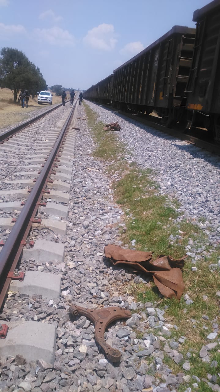 Por lo que, elementos de la Delegación Apizaco y de la empresa de seguridad, inician un operativo, tras solicitar detener la marcha del tren y circulando sobre la vía, se observa mercancía (chatarra) abandonada.