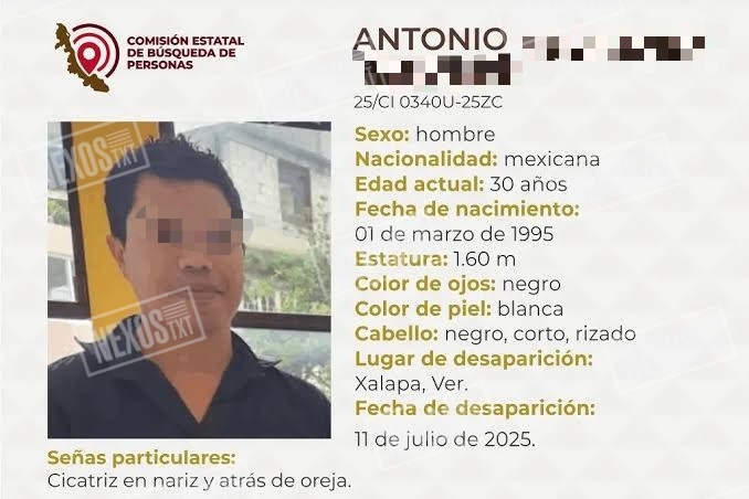 Un hombre originario de Xalapa, Veracruz, identificado como Antonio N., de 30 años de edad, fue localizado con vida en la capital de Tlaxcala, luego de haber sido reportado como desaparecido desde el pasado 11 de julio en su estado de origen.