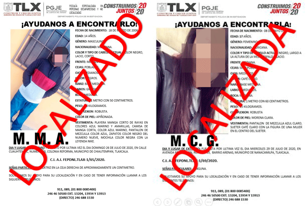 Las denuncias de no localización se registraron simultáneamente, la primera de ellas cuando el padre de la menor de edad de iniciales M.C.G. informó ante la PGJE que su hija se extravió ya que no regresó a su domicilio el 29 de julio del año en curso.
