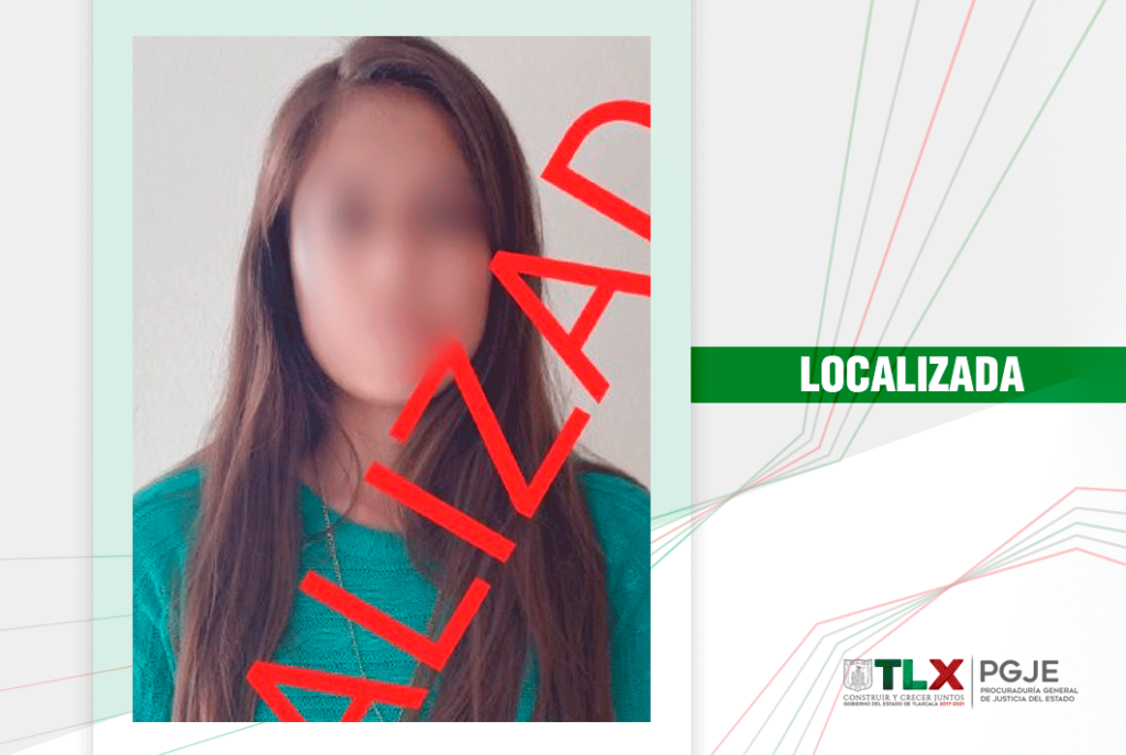 A través del trabajo que realiza Fiscalía Especializada en Personas Desaparecidas y No Localizadas adscrita a la Procuraduría General de Justicia del Estado (PGJE) se logró ubicar a una menor de edad que fue reportada como extraviada en el municipio de Apizaco.