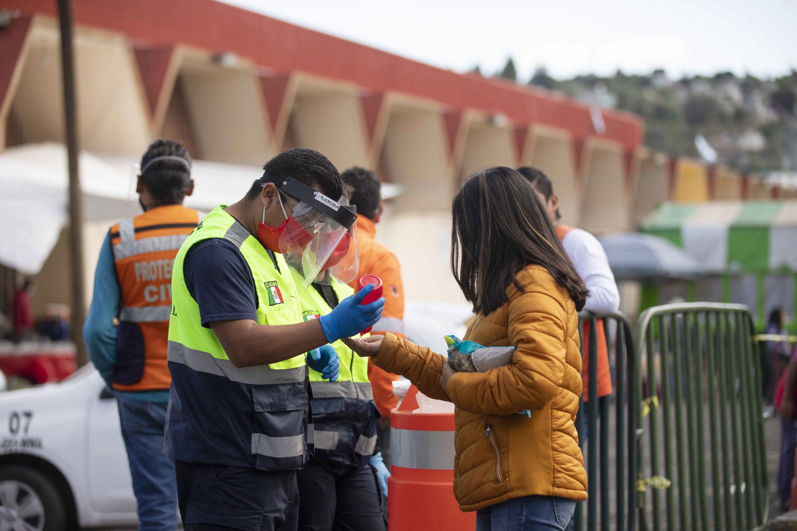 Ramírez Hernández explicó que en cada filtro de acceso, personal de la CEPC invita a la población a cumplir con el uso obligatorio de cubrebocas, suministra gel antibacterial y realiza la toma de temperatura corporal con el apoyo de termómetros digitales.