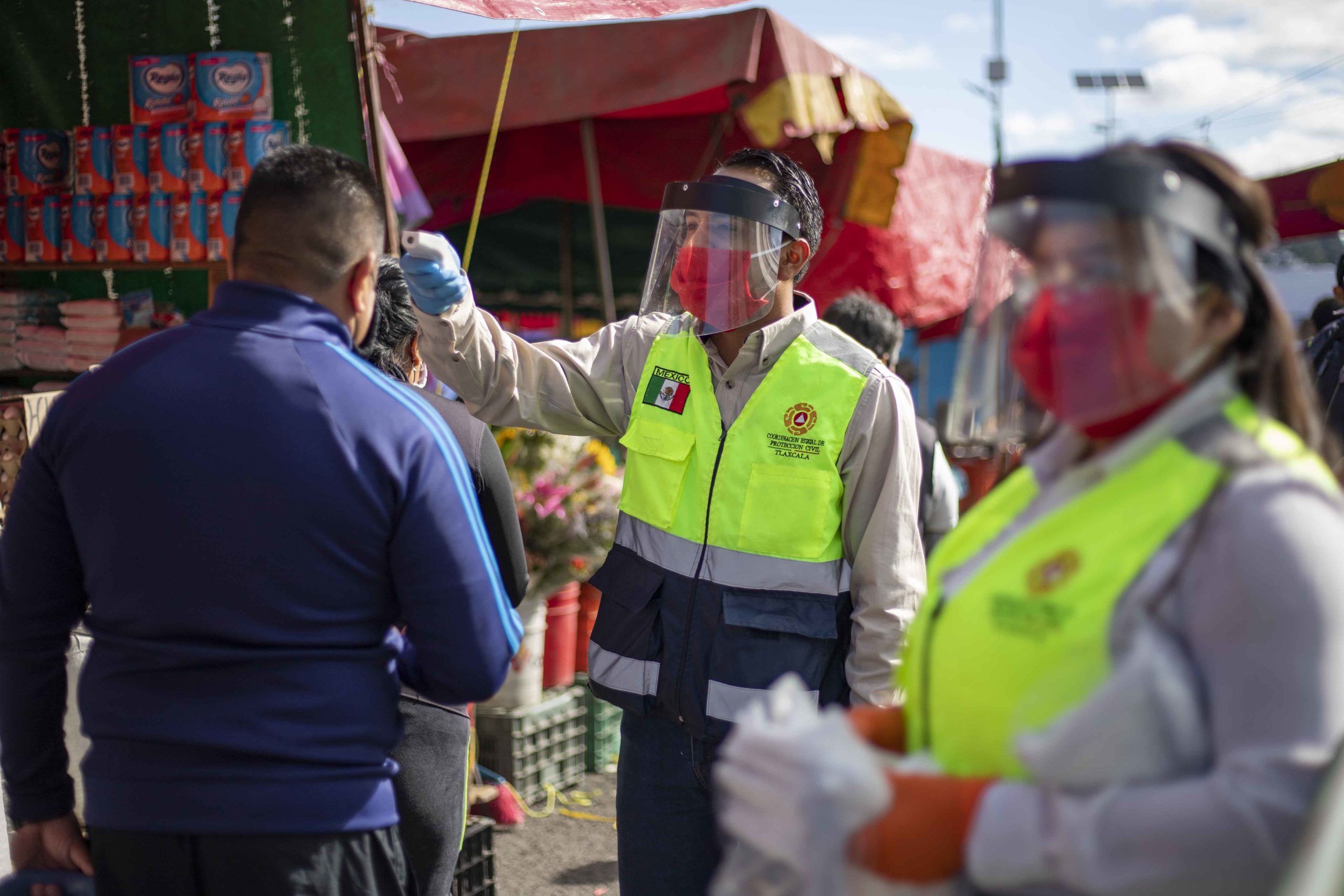 Este sábado, brigadas de la Coordinación Estatal de Protección Civil (CEPC) y de la Secretaría de Salud (SESA), así como personal de Seguridad Pública y Protección Civil Municipal instalaron filtros sanitarios en los accesos de los centros de abasto de Tlaxcala, Apizaco y El Carmen Tequexquitla.