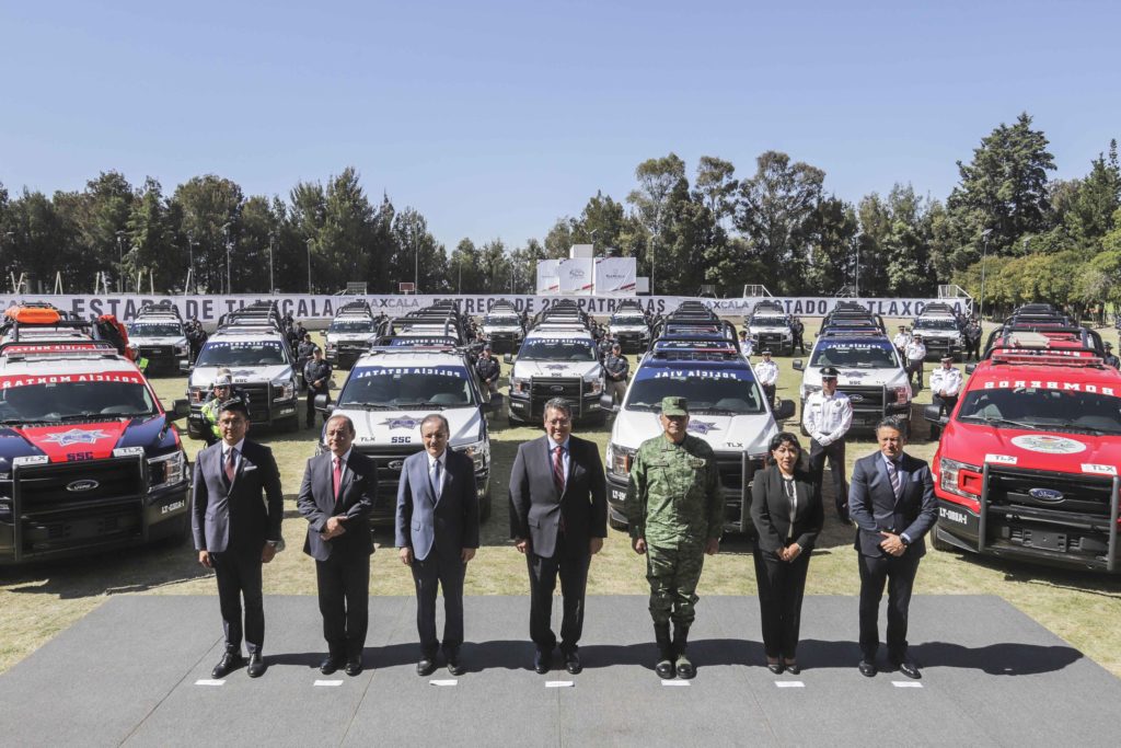 En tanto, Eduardo Valiente Hernández, Secretario de Seguridad Ciudadana de Tlaxcala, explicó que se entregaron 200 unidades, de las cuales 165 son tipo pick-up doble cabina 4×2, 10 pick-up doble cabina 4×4 y 25 unidades tipo explorer interceptor; además de que el 25 por ciento de ellas están equipadas con mamparas de protección para garantizar los derechos de las personas detenidas y de los elementos.