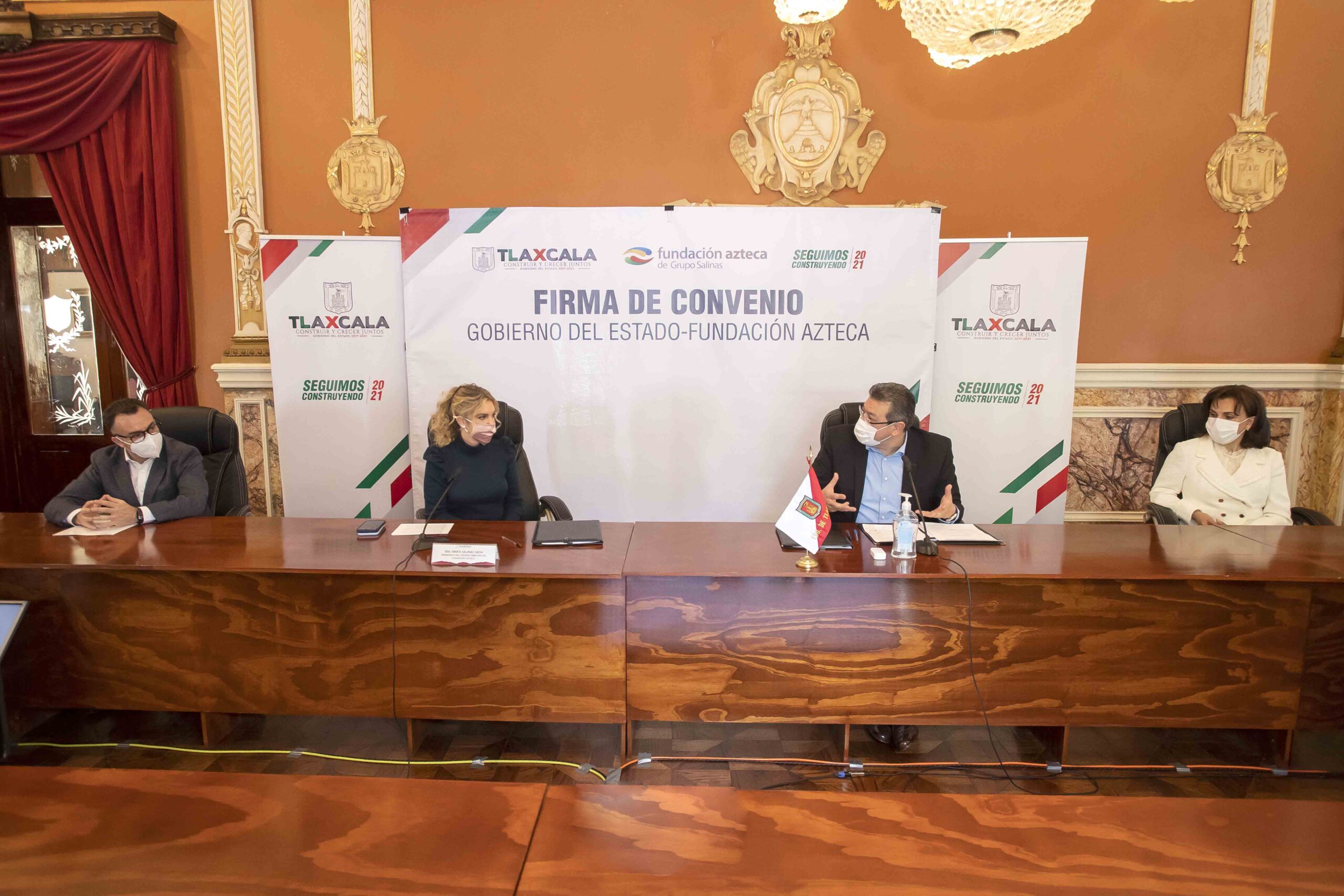 En el Salón Rojo del Palacio de Gobierno, Marco Mena apuntó que el trabajo coordinado entre la Administración Estatal y Fundación Azteca se traduce en que jóvenes estudiantes de la entidad cuenten con más posibilidades de desarrollo educativo.