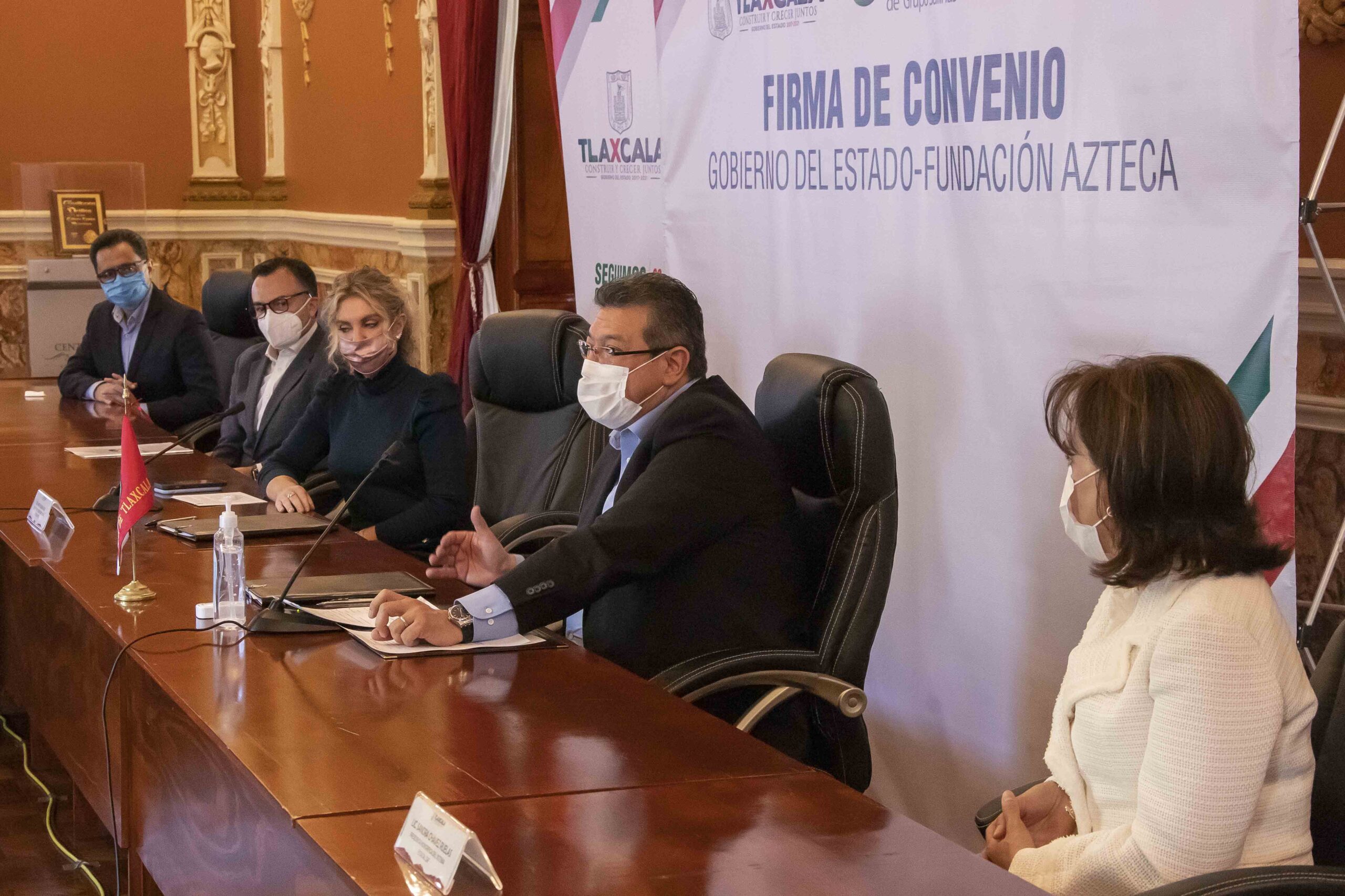En la firma de convenio estuvieron Alejandra Nande Islas, Secretaria de Planeación y Finanzas; Manuel Camacho Higareda, encargado de la Secretaría de Políticas Públicas y Coordinador del Sepuede, así como Antonio Domínguez Sagols, Director General de Fundación Azteca; Isaac Lucatero Castañeda, Director del Sistema Educativo Azteca; Coral Pérez Amaya, Gerente de Operación de Planteles Azteca y Alma Lucia Arzaluz Alonso, Directora de Vinculación con Gobiernos.