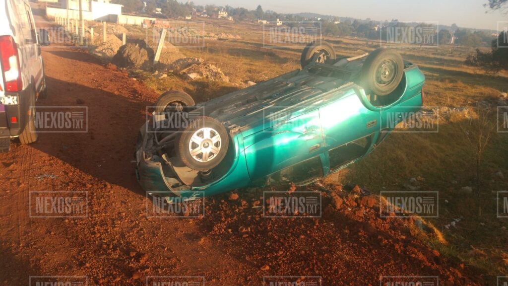 En correspondencia a la comunidad de San Francisco Atexcatzinco, muy cerca del plantel educativo del Colegio de Estudios Científicos y Tecnológicos del Estado de Tlaxcala, un automóvil en el que viajaba un hombre y una mujer salió de la cinta asfáltica y volcó hasta quedar “llantas arriba” en un predio aledaño a la misma vía carretera.