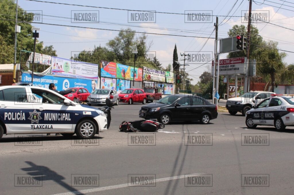 Motociclista se pasa el alto y choca vs vehículo en Tlaxcala