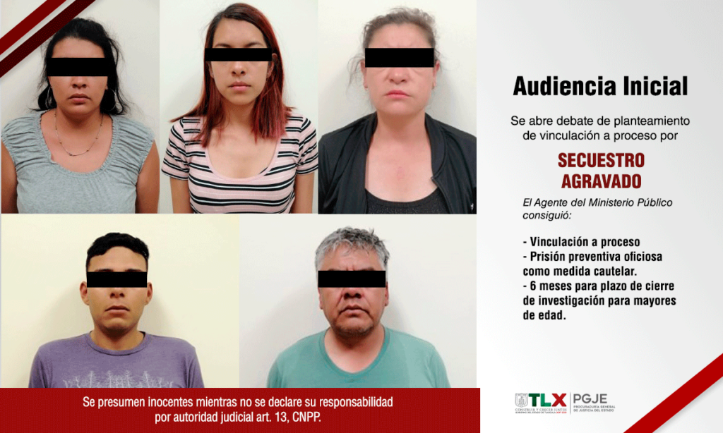 Derivado del trabajo coordinado entre el Agente del Ministerio Publico, peritos y oficiales de la Policía de Investigación, la Procuraduría General de Justicia del Estado (PGJE) logró que un Juez de Control vinculara a proceso a cinco personas por el delito de secuestro agravado.