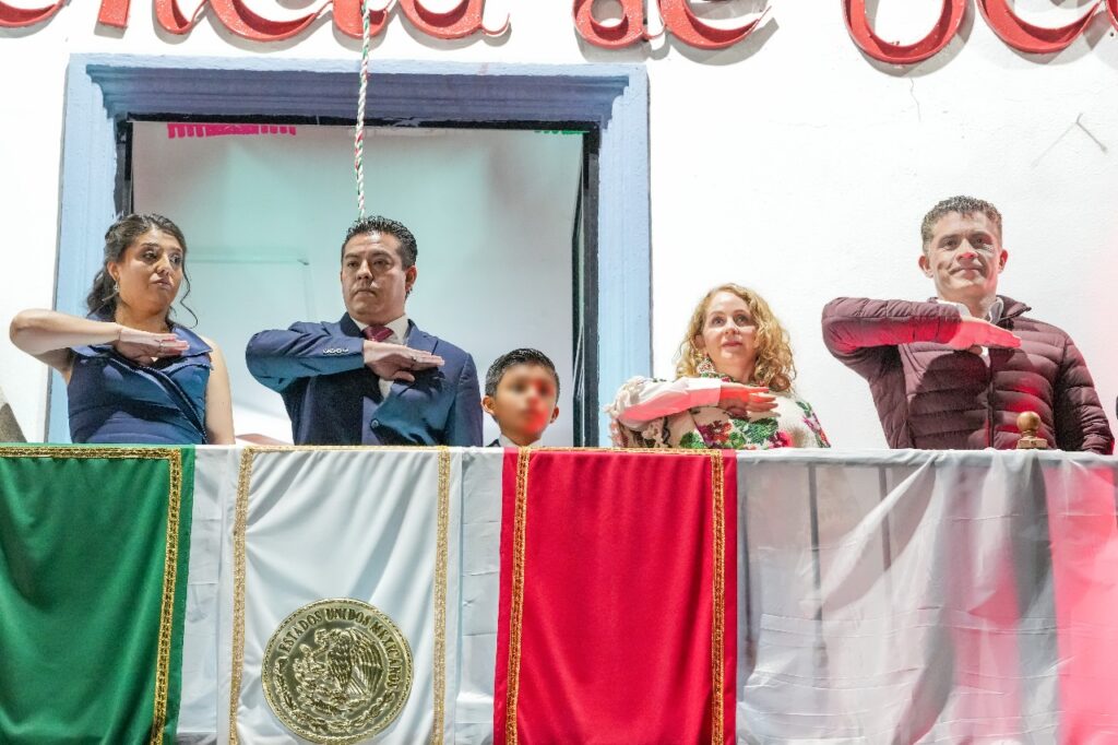 El presidente municipal de Tlaxcala, Alfonso Sánchez García, acompañado de su esposa Marcela González Castillo, fue recibido con entusiasmo por los habitantes de Ocotlán durante la celebración alusiva al 215 aniversario de la Independencia, convocada por el presidente de comunidad, Julio Buendía Martínez.