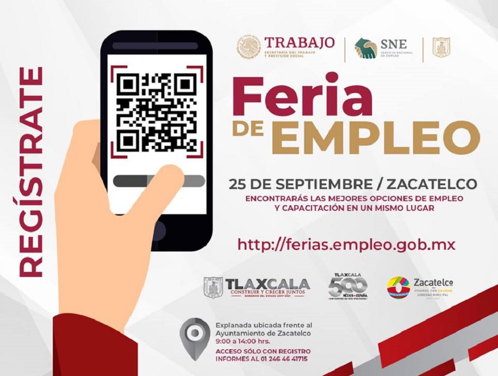 El Coordinador del Sepuede y Director General del Instituto de Capacitación para el Trabajo del Estado de Tlaxcala (Icatlax), Manuel Camacho Higareda, detalló que el evento se efectuará en la explanada del Ayuntamiento de Zacatelco, en un horario de 9:00 a 14:00 horas, donde las personas podrán encontrar una plaza laboral acorde a su perfil.