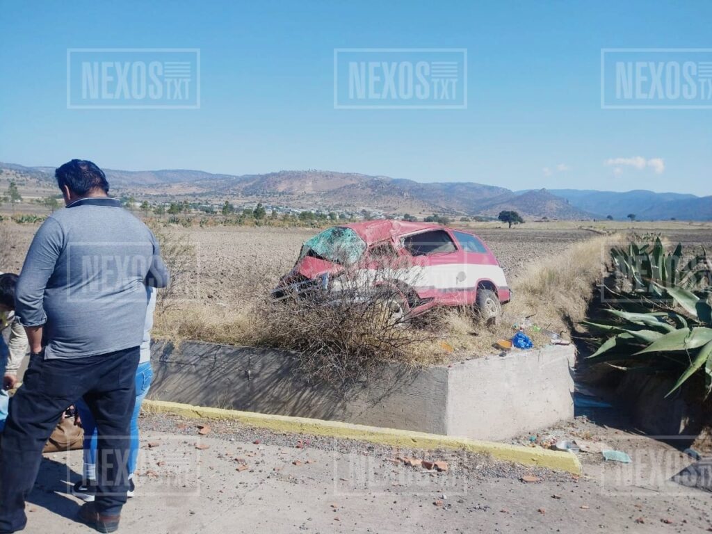 A escasos metros de la comunidad de Lagunilla, la camioneta que tripulaban quedó sobre un terreno de labor, luego de que la conductora perdiera el control a raíz de evitar una zona de baches mientras se dirigían a Apan.