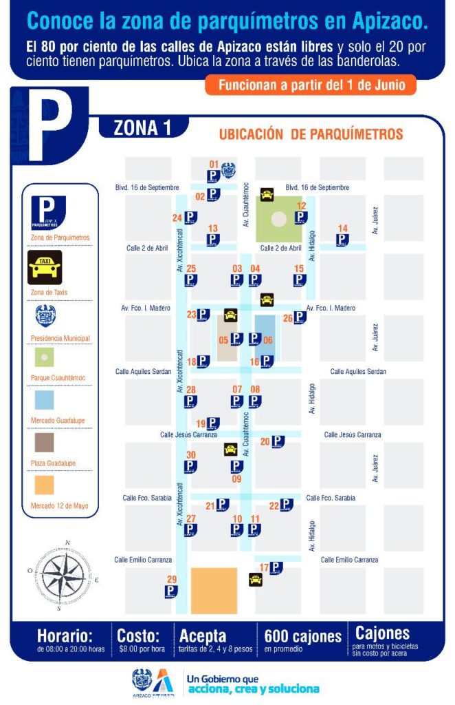 Agregó que empezó una campaña informativa con el objetivo de que, tanto visitantes, como apizaquenses tengan claro el funcionamiento de los parquímetros.