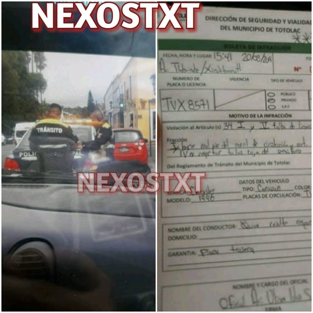 En la infracción, el oficial escribió que los hechos ocurrieron en la Avenida Tlahuicole, la cual concluye en San Miguel Tlamahuco, como referencia antes del Puente Rojo, es decir que la imagen y documento confirman que los oficiales de Totolac siguen infraccionando fuera de su jurisdicción.