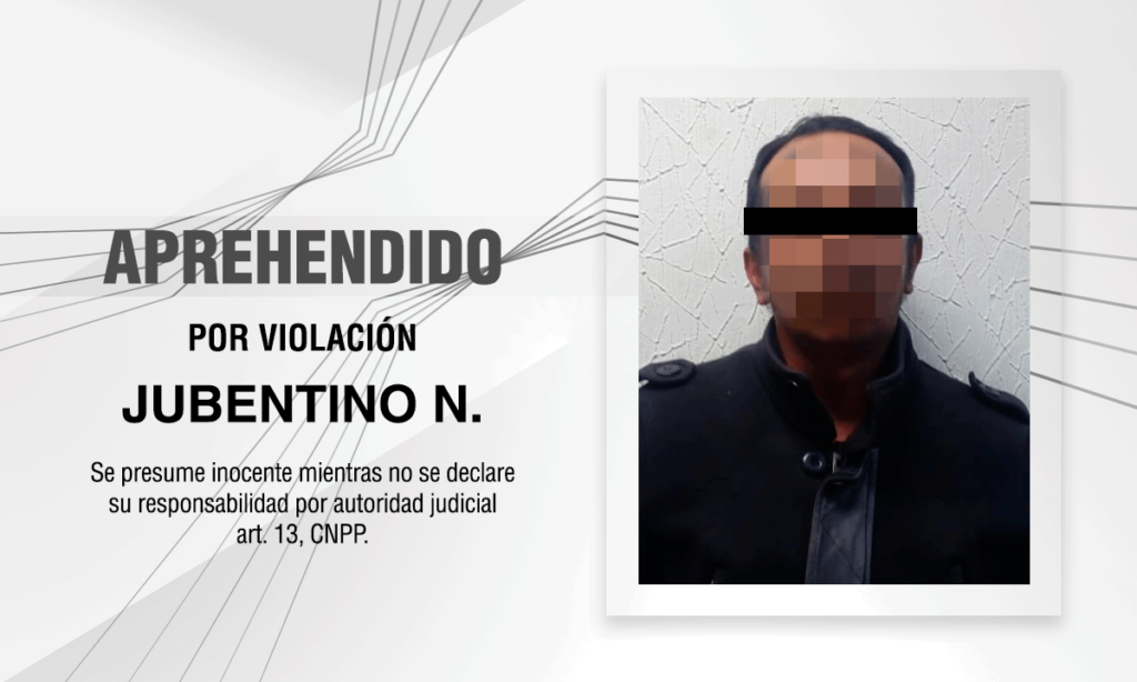 El seguimiento a la Carpeta de Investigación correspondiente permitió a oficiales de la Policía de Investigación adscritos a la Procuraduría General de Justicia del Estado (PGJE), identificar y aprehender a Jubentino N., como probable responsable del delito de violación en agravio de su sobrina menor de edad.