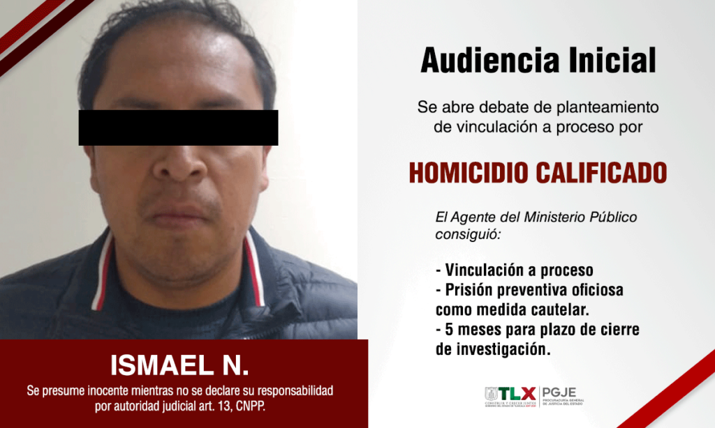 Como resultado del trabajo coordinado de agentes del Ministerio Público, peritos y oficiales de la Policía de Investigación, la Procuraduría General de Justicia del Estado (PGJE) logró la vinculación a proceso de Ismael N., como probable responsable del multihomicidio cometido en agravio de una familia en el municipio de Mazatecochco.