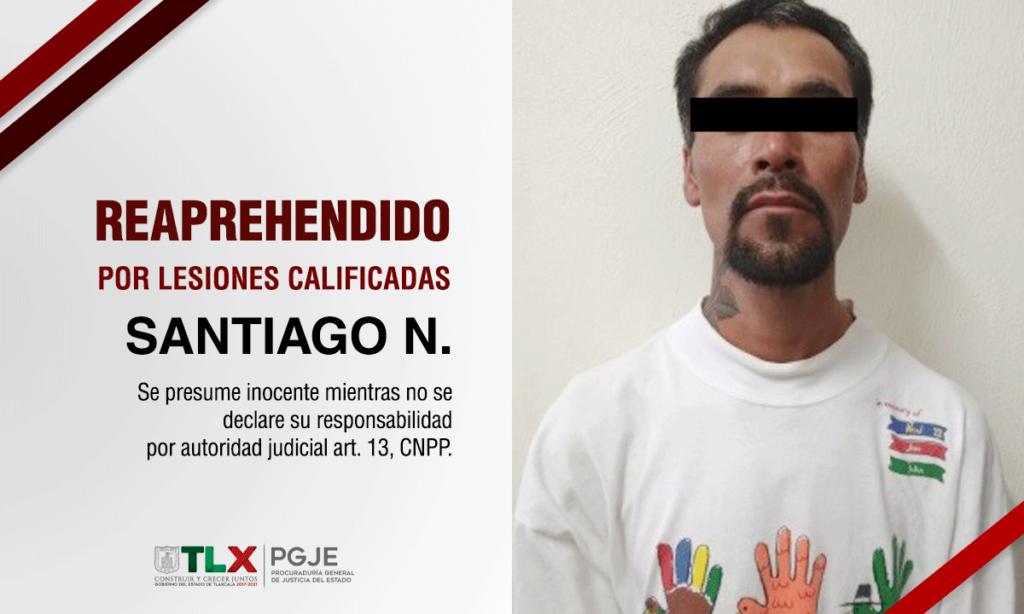 Como parte del seguimiento a las indagatorias radicadas, la Procuraduría General de Justicia del Estado (PGJE) a través del trabajo de la Policía de Investigación cumplimentó una orden de reaprehensión en contra de Santiago N., por el delito de lesiones calificadas.