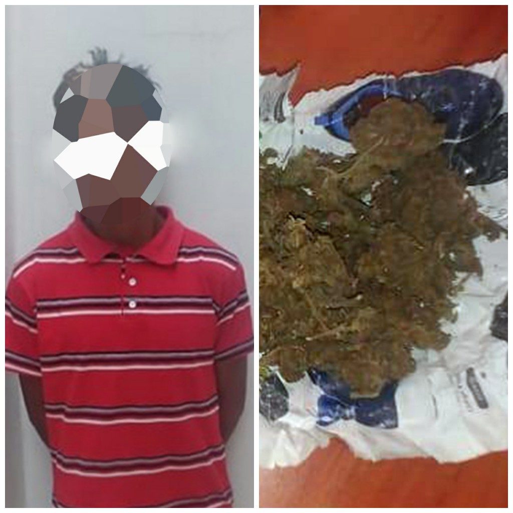 Ante tal comportamiento, los elementos estatales procedieron a inquirir al sujeto y tras realizar una inspección preventiva encontraron entre su ropa un envoltorio con hierba seca, la cual mostraba características propias de la droga Cannabis sativa (marihuana).