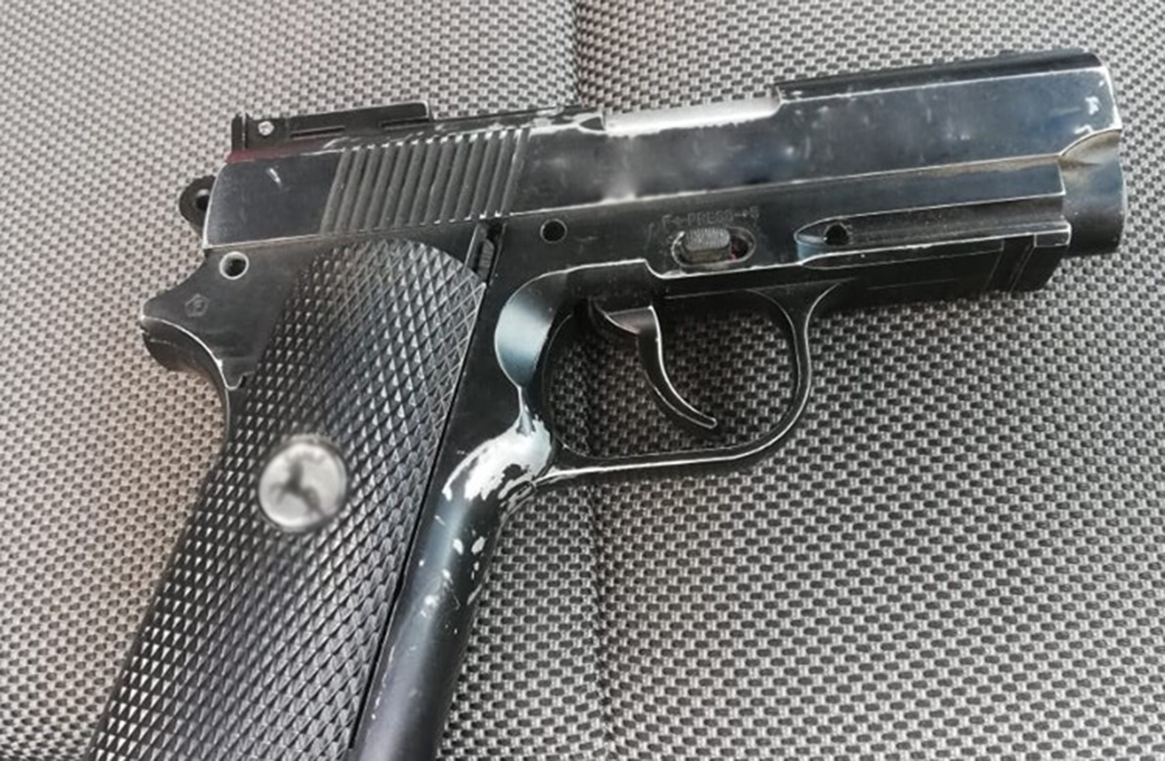 Siendo un comportamiento reticente hacia la autoridad, los elementos dieron alcance a la unidad para inquirir al masculino y mediante una inspección preventiva encontraron un arma de fuego entre su ropa, así como siete cartuchos útiles calibre 22 y uno calibre 3.80, además, una bolsa pequeña de plástico que en su interior contiene una sustancia con características propias de la metanfetamina.