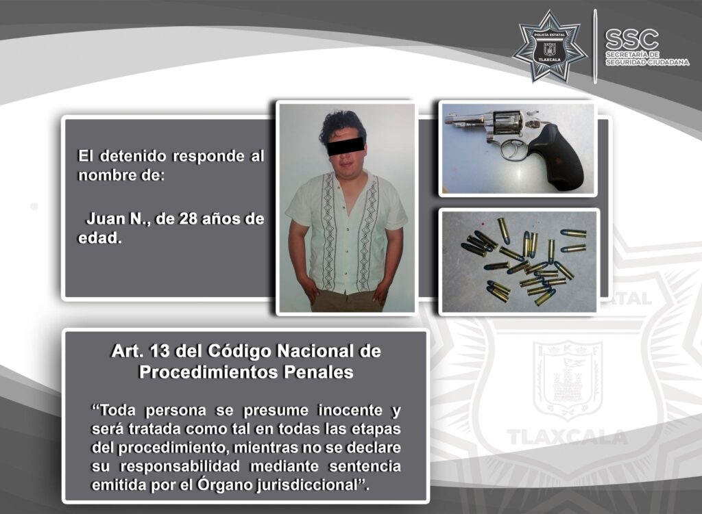 La Secretaría de Seguridad Ciudadana (SSC) a través de personal de la Dirección de Operaciones detuvieron este fin de semana en el municipio de Zacatelco a una persona con un arma de fuego sin documento alguno que acreditara legalmente su posesión y portación de la misma.