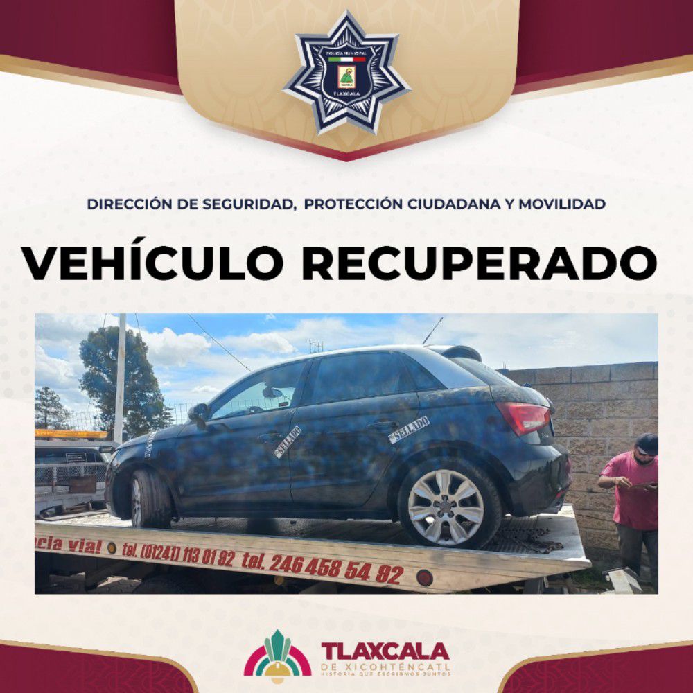 Gracias a una oportuna denuncia ciudadana, elementos de la policía municipal de Tlaxcala recuperaron un vehículo con reporte de robo vigente, el cual obstruía la entrada de un predio en obra negra en la comunidad de San Sebastián Atlahapa.