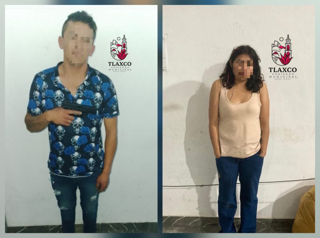 Elementos de la Policía Municipal de Tlaxco detuvieron a un hombre y una mujer que caminaban sobre la carretera Tlaxco–Apizaco, a la altura de la gasolinera cercana al entronque de la autopista, luego de un reporte ciudadano al 911 que alertaba sobre su conducta sospechosa.