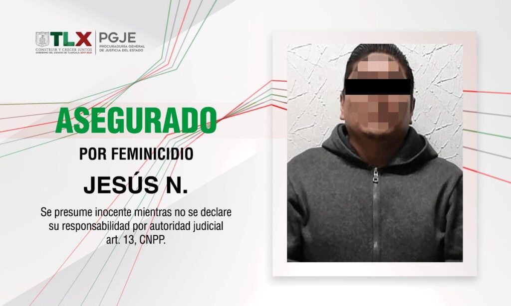 La Procuraduría General de Justicia del Estado (PGJE) mantiene bajo investigación y en calidad de detenido a Jesús N., como probable partícipe del feminicidio de su esposa perpetrado la noche del 17 de febrero en el municipio de Xaloztoc.