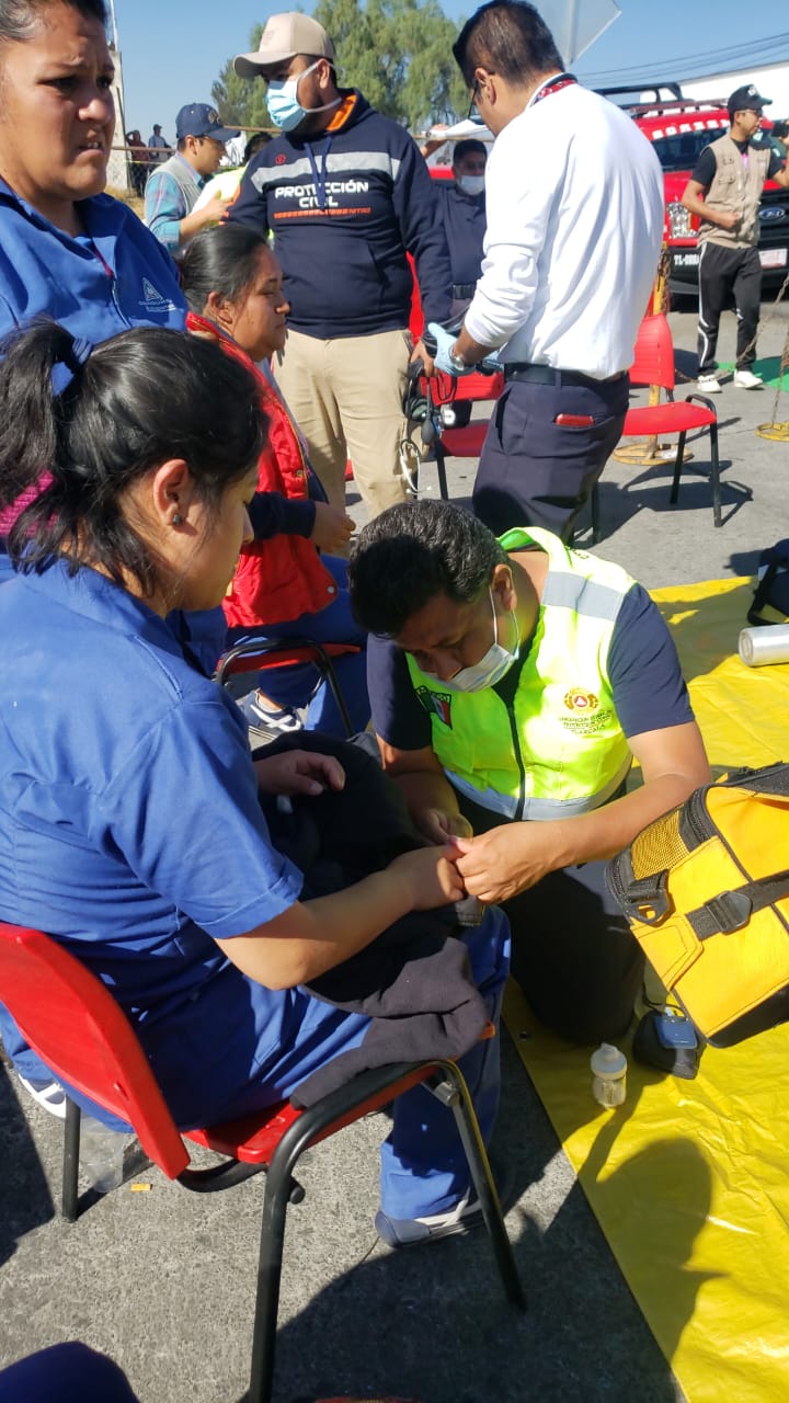 Diversas unidades prehospitalarias como la Cruz Roja Mexicana delegación Tlaxcala, At-03 de San Juan Totolac, Lider12 de Panotla, Puma-01 de Protección Civil del Estado y del CRUMT, se hicieron presentes en minutos para atender a hombres y mujeres para descartar un problema mayor en su salud.