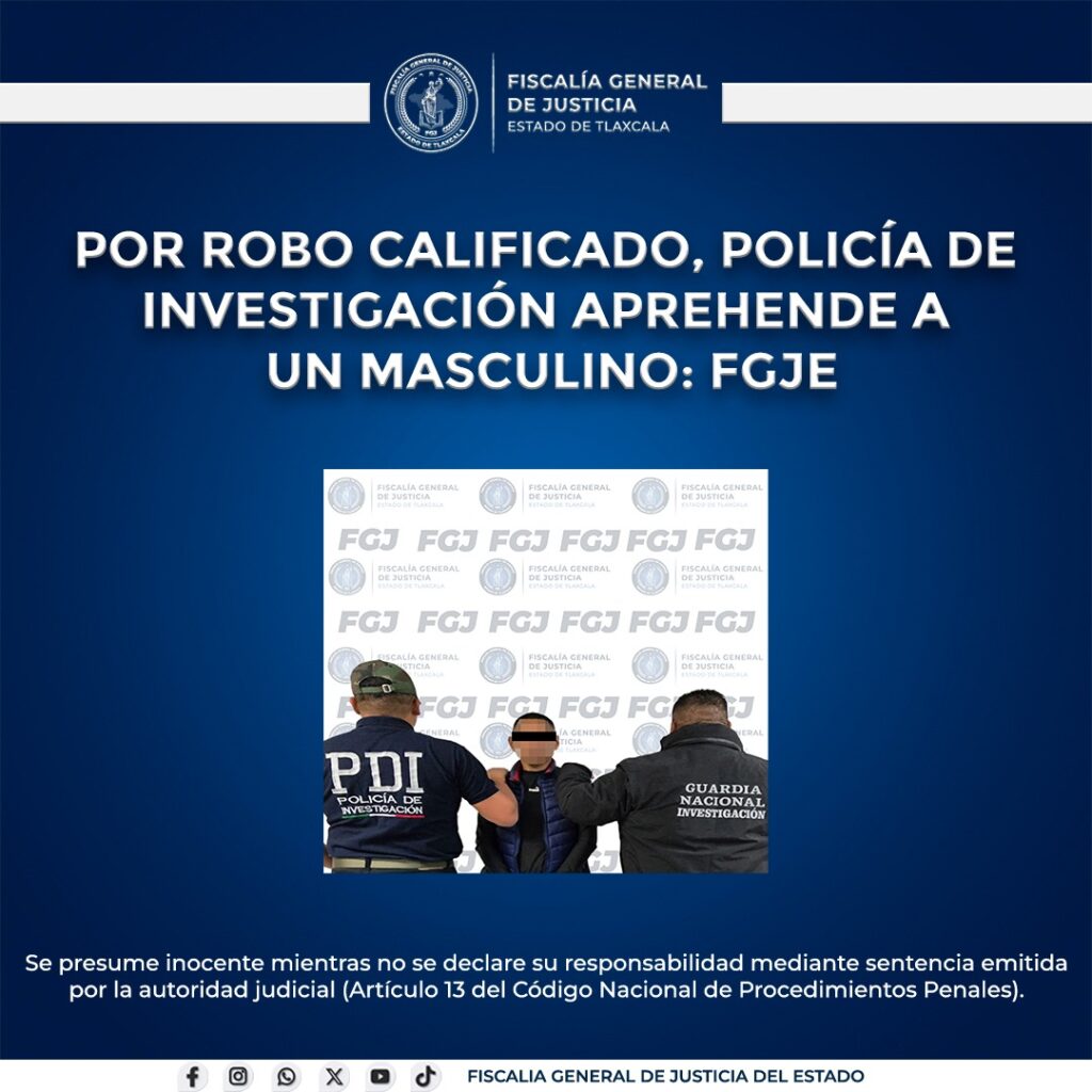 Con estas acciones, la Fiscalía General de Justicia del Estado reitera su compromiso de presentar ante un Juez a toda persona que atente contra la seguridad y el patrimonio de la ciudadanía tlaxcalteca.