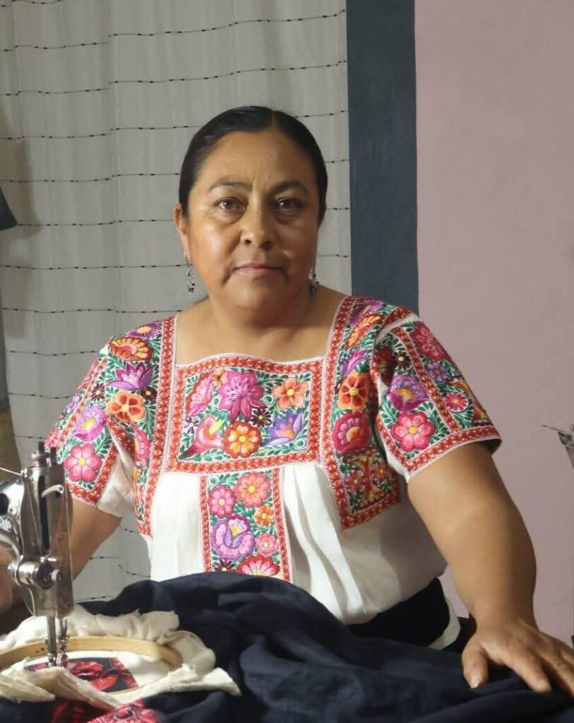 “Fue un gran orgullo y me siento muy contenta de que mi bordado sea representativo de mi localidad y de mi estado”, expresa con voz serena, al mencionar la emoción que sintió al saber que era para la presidenta Sheinbaum.